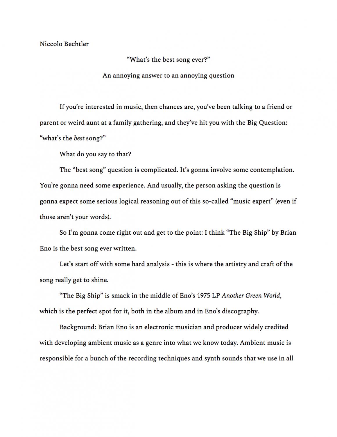 What’s the best song ever?: An annoying answer to an annoying question